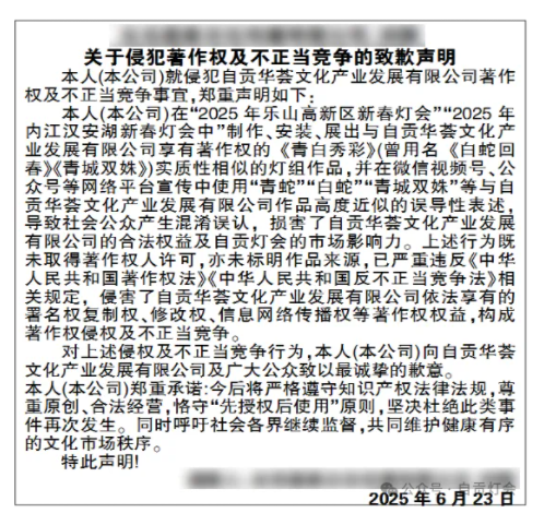 然而,原創(chuàng)成果的保護(hù)面臨嚴(yán)峻挑戰(zhàn)。抄襲、模仿等侵權(quán)行為,不僅是對創(chuàng)作者勞動成果的粗暴掠奪,更是對文化創(chuàng)新生態(tài)的嚴(yán)重破壞:面對外界的借鑒與潛在的侵權(quán)行為,自貢燈會始終堅守原創(chuàng)初心,以堅定的姿態(tài)捍衛(wèi)彩燈文化的尊嚴(yán)。知識產(chǎn)權(quán)是文化創(chuàng)新的基石,只有保護(hù)好它,才能確保自貢燈會的持續(xù)繁榮與發(fā)展。為此,我們已建立完善的知識產(chǎn)權(quán)保護(hù)機(jī)制,對任何形式的抄襲行為保持高度警覺,并采取一切必要措施予以反制。
